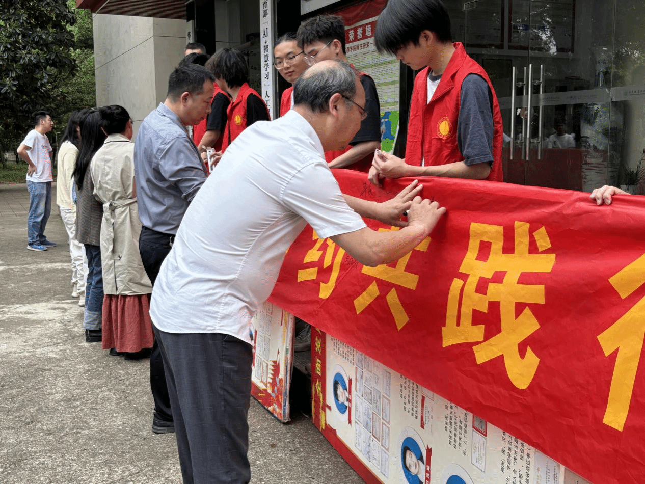 随后,学院在开展“践行节约”签名活动。活动现场,“反对浪费我先行,崇尚节约共践行”的红色横幅格外醒目。校党委委员、党委宣传部(统战部)部长曾志、德赢Vwin官方区域合作伙伴班子成员及辅导员们率先垂范,庄重地在横幅上签下自己的名字,为学生们树立榜样。在老师们的带动下,同学们热情高涨,有序排队,郑重地在横幅上留下自己的名字,表达了践行节约的坚定决心。