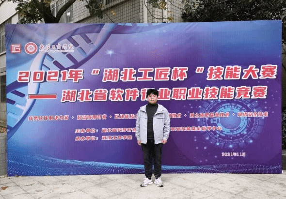 2、段松,2022届毕业生,在校期间,在2020年参加第46届世界技能大赛湖北省选拔赛,获得一等奖并入选湖北省“网站设计与开发”赛项集训队;经推荐参加2020年一带一路暨金砖国家技能发展与技能创新大赛(国内赛)获一等奖,晋级国际赛获特等奖第一名;2021“湖北工匠杯”技能大赛——移动应用开发赛项中荣获一等奖;2021年“软件技术应用”交流赛获三等奖。2020-2021校“百优技术能手”、湖北人社厅授予“湖北省技术能手”等荣誉称号。现就职于中国腾讯武汉分公司,任高级前端工程师,月薪20000元。