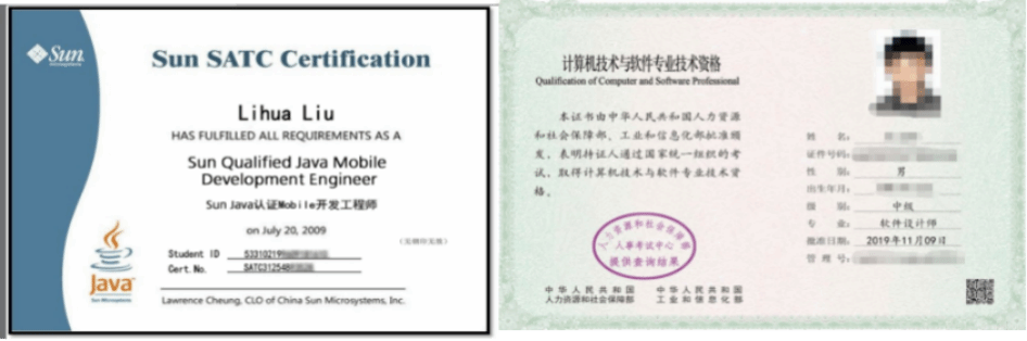 “1+X”Java Web应用开发职业技能等级证书、大数据应用开发(Java)职业技能等级证书;全国计算机技术与软件专业技术资格(水平)考试的软件设计师、程序员、UI界面设计工程师。